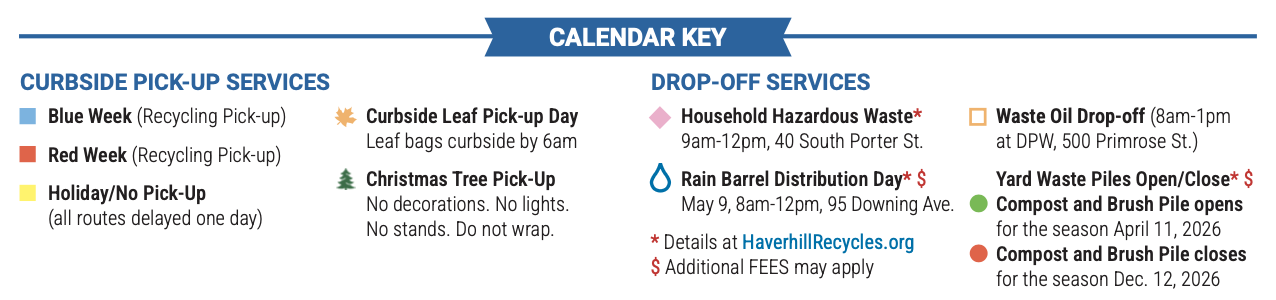 Saturday, January 24, 2026 (Red Week) - Recycling Pick-Up/Waste Oil Drop-off (8am-1pm at DPW, 500 Primrose St.)