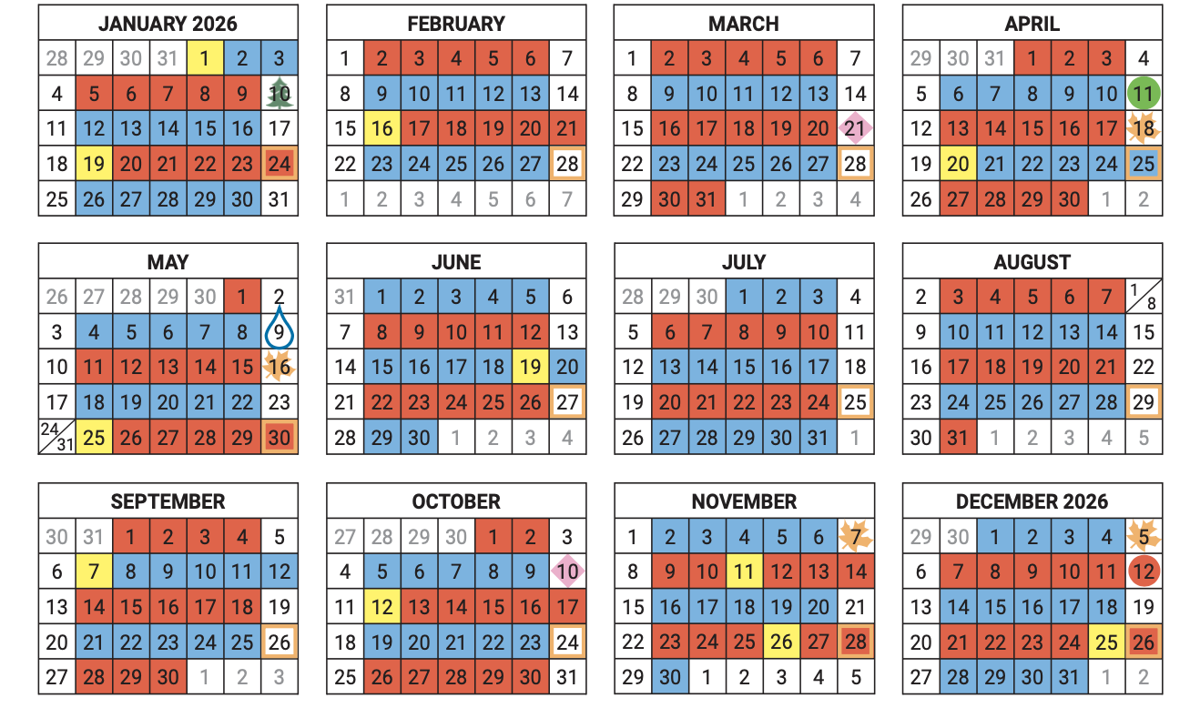 Monday, January 19, 2026 (Yellow) - Holiday/No Pick-Up (All Routes Delayed One Day)