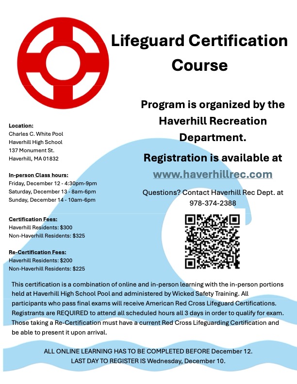 Lifeguard Certification Course offered by Haverhill Recreation Department
