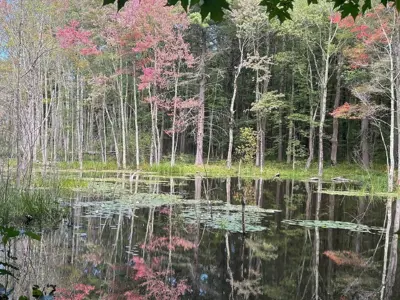 Encircling 1,500 feet of lakefront, Creek Brook adds to the 300+ acres of surrounding conservation land protected for water supply and biodiversity. Like the rest of the Crystal Lake area, this site is rich in diversity, containing a mix of streams, wetlands, mature forests, and rocky ledges along with all the plant and animal life associated with each of these habitats. Deer, beaver, mink, otter, wild turkey, osprey, owls, and a wide variety of waterfowl are just a few of the species you might encounter here. With ample fishing spots, you may have luck catching largemouth bass, pickerel, sunfish, perch, and more. Unique to this area, trails along Creek Brook take you to a double beaver dam.