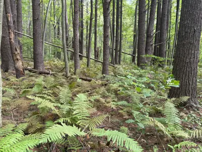 Purchased in 2024 through Local Acquisitions for Natural Diversity (LAND) Grant funding, this property hosts a well-used network of trails that connect with adjacent protected lands, including Essex County Greenbelt Association-owned conservation land and a landlocked Haverhill Conservation-owned parcel.