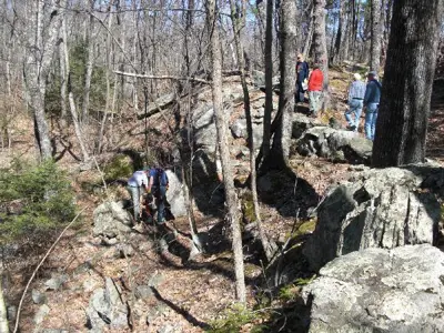 The area is composed of both hardwoods like Black Oak, White Oak, White Ash, Red Maple, Black Birch, and Shagbark Hickory, as well as softwoods like White Pines and Hemlock. This area is also a good place to observe wetlands and vernal pools; both of which provide habitat to many unique species of plants and wildlife. Vernal pools, which dry up during summer months, provide excellent habitat for species like the Spotted Salamander and the Wood Frog which rely on these vernal pools to lay their eggs in masses around early spring when the pools are filled. The wetlands themselves are habitat to some species of turtles. Should you chose to stay in the uplands you might be able to catch a glimpse of porcupines, which use the rocky outcroppings as homes. If you want to see what a wetland or vernal pool is for yourself, Crystal Gorge is one of the more accessible ways to do so as most of the trails go through the swamp like terrain without the risk of your shoes getting stuck in mud.